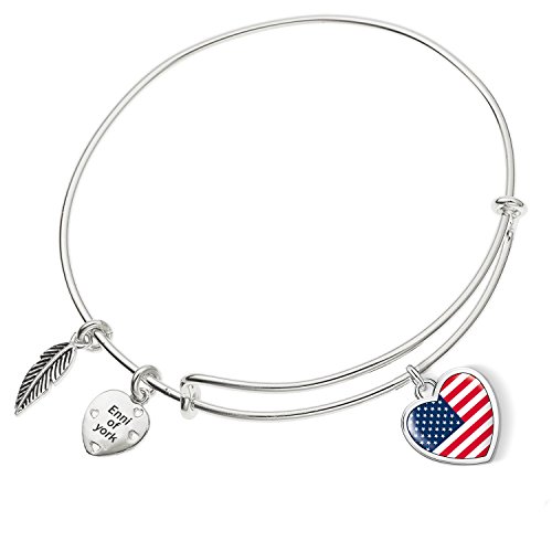 Enni of York Heart flag USA Charm Expandable Ani-Silver Bangle Bracelet