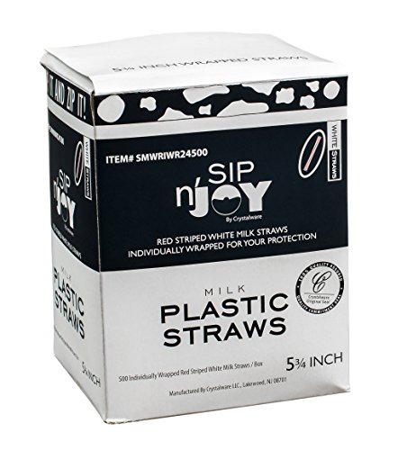 Crystalware Plastic Small Straws, Stirrers, Milk Straws, Red and White Straws, Individually Wrapped, Foodsafe PP Plastic, Small Diameter, 5 3/4 Inches Long, 500/box