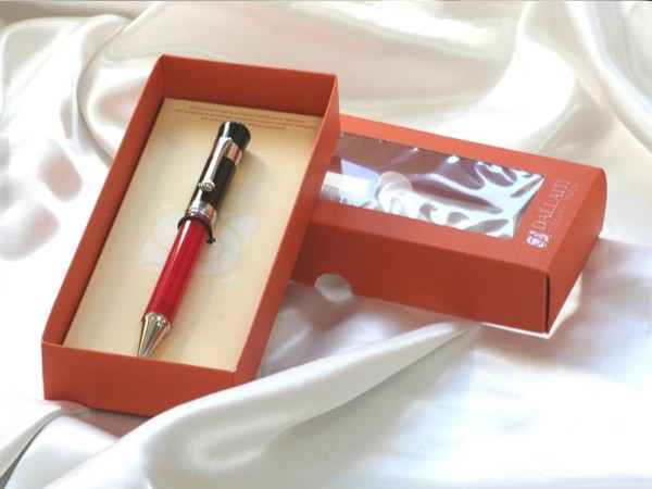 | 深く落ち着いた印象のレッドカラーをシンプルなブラックのキャップが全体を引き締めています。フォーマルなシーンにもよく合います。ボディの後ろ部分を回すとペン先が出るタイプです。プレゼントにもぴったりです。 |