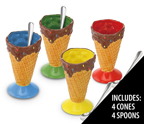 [Product Information]- Set Includes: (4) Ceramic Dessert Cones And (4) Metal Spoons