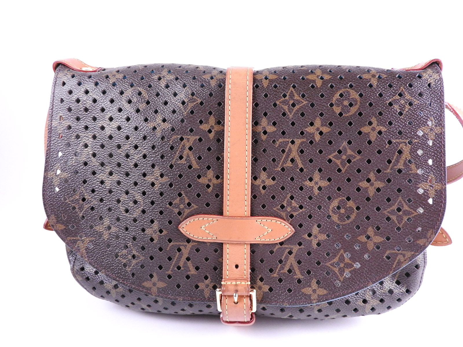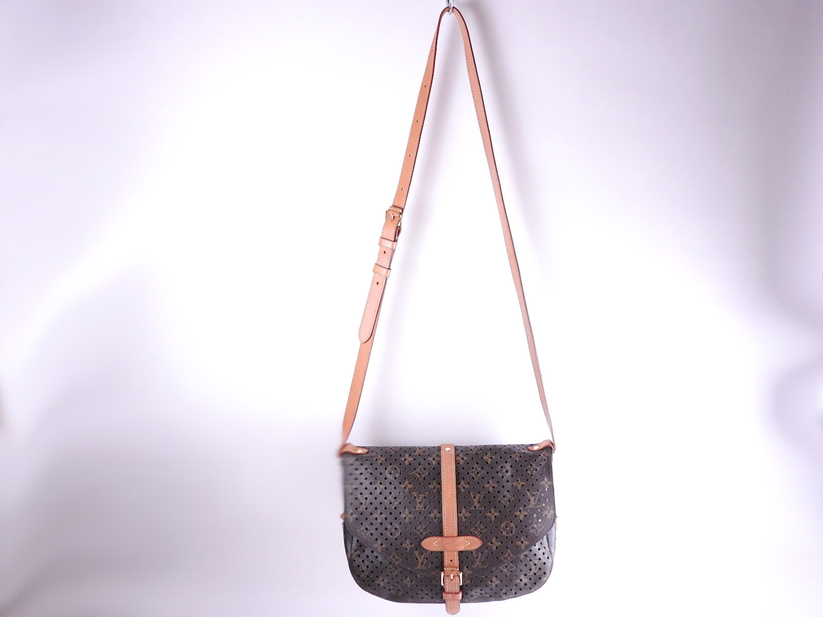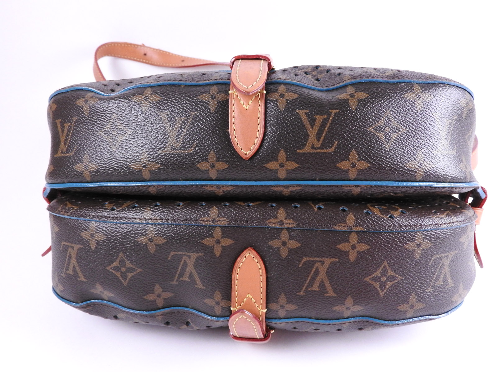 Auth LOUIS VUITTON Monogram Perfo Saumur 30 Crossbody Shoulder Bag Canvas Turquoise Blue M93998 A-7279