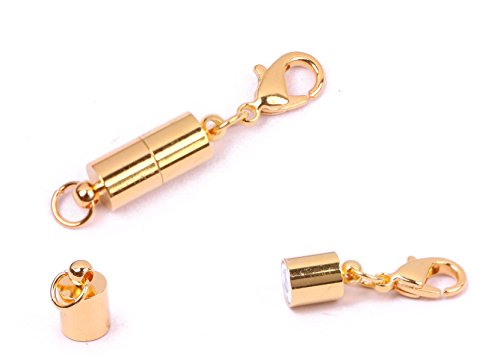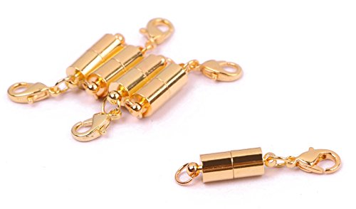 Shapenty Small Cylindrical DIY Magnetic Lock Clasp Connector Accessories with Lobster Clasp for Jewelry Necklace Bracelet, 5Pack (Gold)