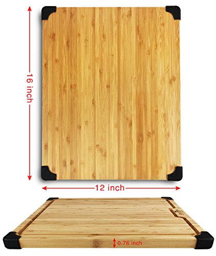 Large Bamboo Cutting Board With Non Slip Silicone Feet, Natural Organic Bamboo Chopping Board With Groove, 16” x 12” Large Cheese Board Butcher Block