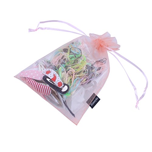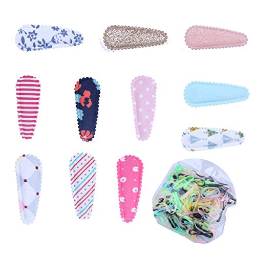 KimmyKu 10Pairs/20Pcs Cotton Fabric Covered Snap Infant Toddler Baby Girls Hair clips Accessories Barrettes Non Slip Plus 450pcs Rubber Hair Bands Tie