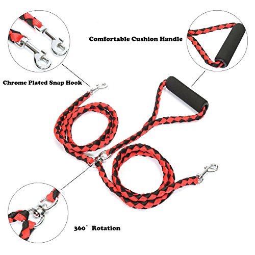 Product Description Rickpet Double Dog Leash for 2 Dogs, 54 Inches Braided Tangle Free 360°Rotation Dual Dog Walking Leash with Soft Handle for Twin Large Medium Small Dogs 0