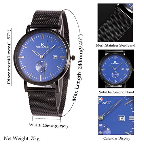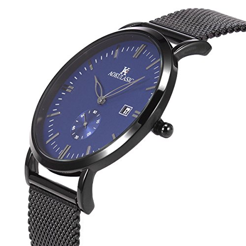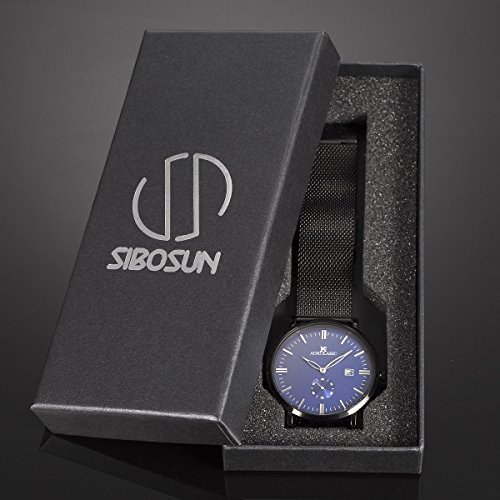 -. Title : SIBOSUN 腕時計 メンズ 超薄型 メッシュ ステンレス 鋼 日本クォーツ 防水 日付 サブダイヤル秒