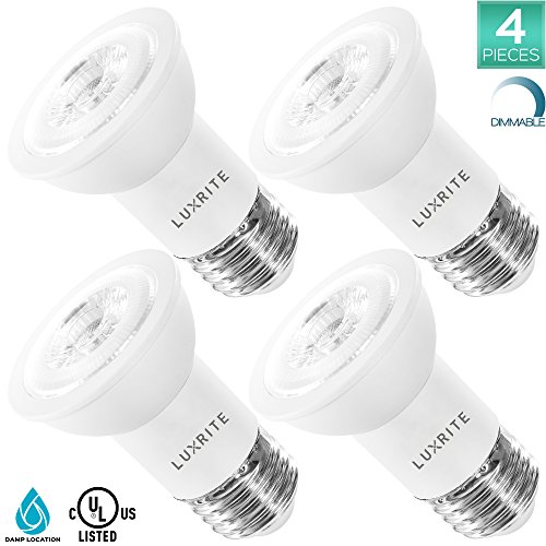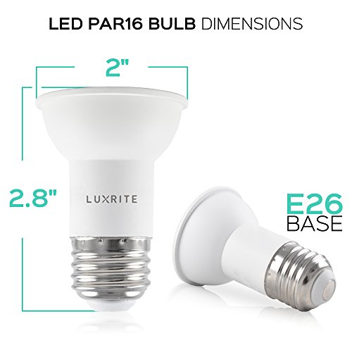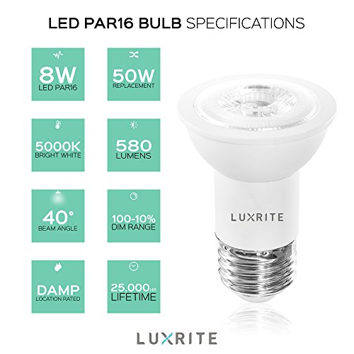 Luxrite PAR16 LED Bulb, 8W (50W Equivalent), 5000K Bright White, 580 Lumens, ENERGY STAR, Dimmable, Flood Light Bulb, 40° Beam Angle, Damp Rated, UL Listed, E26 Base, 4-Pack