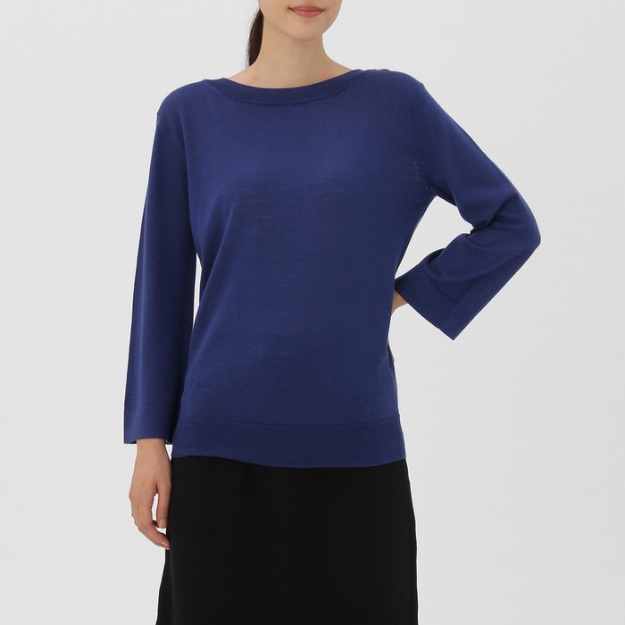 Muji 울 실크 씻을 수 있는 보트 넥7 분수스웨터 부인S블루 편의점 수취가