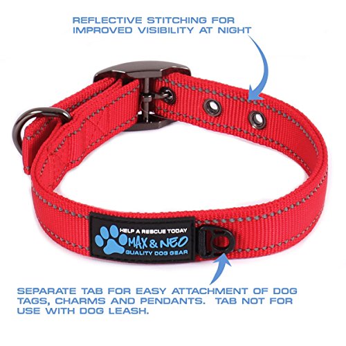 Studio : Max and Neo Dog Gear Publisher : Max and Neo Dog Gear Binding : Misc. Product Description ABOUT US Max and Neo™ Dog Gear is named after my dog Neo and my brother's dog Max. Both dogs lived happy lives in Arizona. When Neo passed away, I began fostering rescue dogs. It became apparent to me that running dog rescues required alot of resources in both time and money. Max and Neo Dog Gear was started to help dog rescues with their never ending need for dog supplies. We are proud to be able to offer this program which will provide a constant supply of dog collars and leashes to dog rescues. While a simple leash or collar may not seem like much, each donated leash and collar allows dog rescues to reserve its funds for other much needed services such as medical bills, spaying, neutering, and dog food. OUR COLLARS The MAX Metal Buckle Dog Collar is made from two layers of very high quality nylon. This special nylon is thick, tough yet comfortable. When you receive and feel the collar you will know that it was made with quality and care. Features: 1" wide x 4mm thick nylon for Med Large 3/4" wide x 3mm for Small 5/8" x 2mm for X-Small 1.5" x 4mm for X-Large Reflective stitching for increased nighttime visibility Separate loop for dog tags and charms Gunmetal finished quality metal