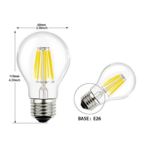 YQL Vintage Edison LED Bulb,8W(80W Equivalent),Dimmable A19 Antique LED Filament Light Bulb,5000K Daylight(High Efficiency),E26 Lamp Base, Pack of 1