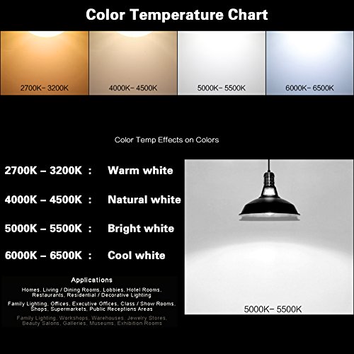 - 360 degrees light angle, 800lm, 5000K color temperature,when you light up the bulbs,you can obtain the bright light same as in the sun at noon.