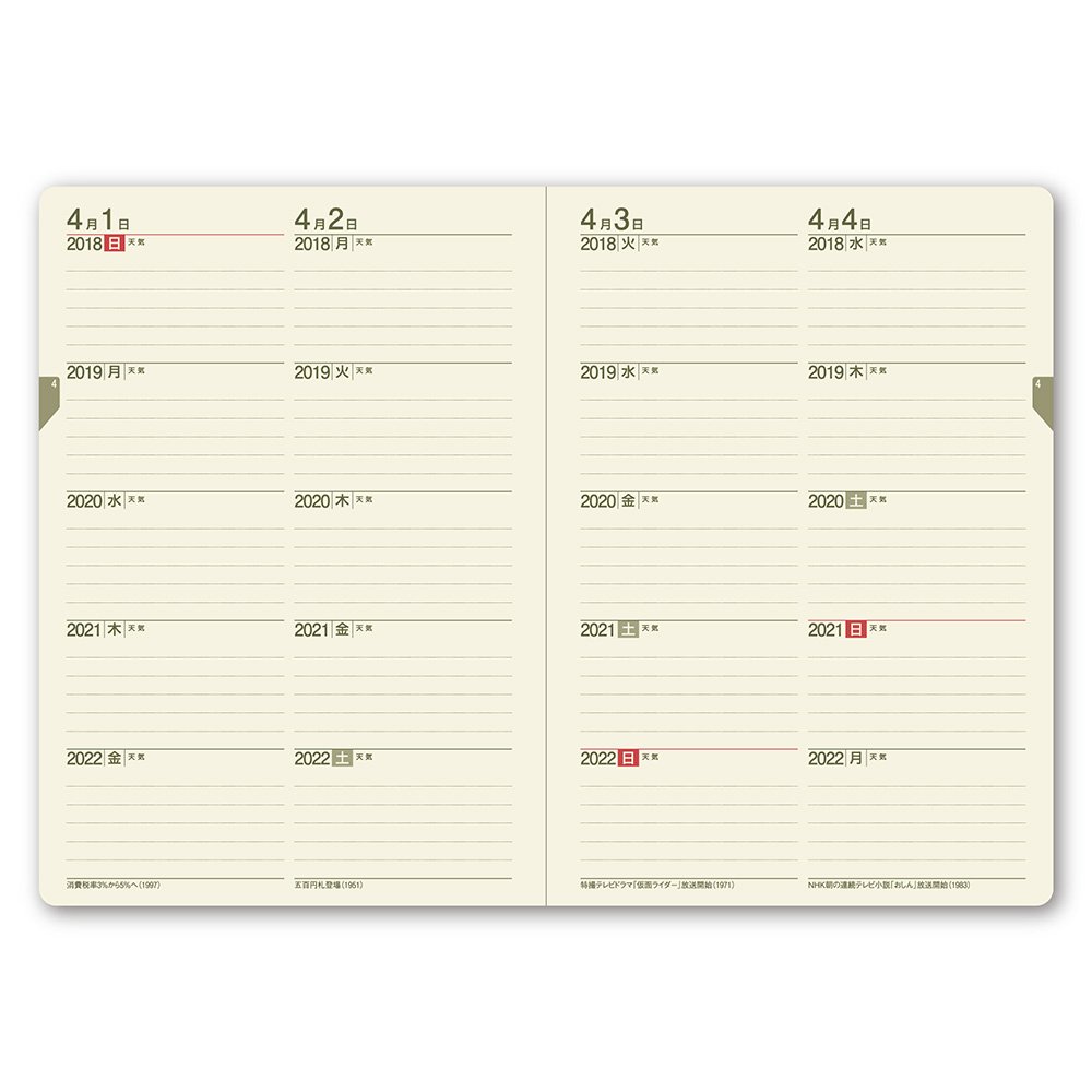 Three year diary and five year diary I am allowed to use it, but it is very easy to use and I like it. Although we carry a five-year diary for five years, there is no damage once, it is a reliable notebook. There is a slight model change, but it is attractive that it does not change much.
