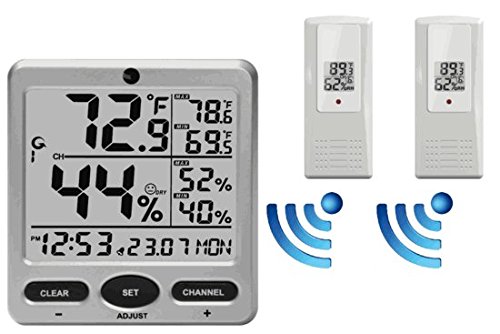 Ambient Weather WS-08-X2 Wireless Indoor/Outdoor 8-Channel Thermo-Hygrometer with Daily Min/Max Display with Two Remote Sensors