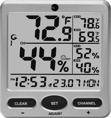 - The display console displays temperature and humidity, minimum and maximum temperature and humidity, which can be reset manually or daily, date and time.