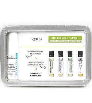 For sensitive skin + redness. Calms even the most reactive skin. Kit Includes: Oleosomes Time-Release Delivery Creme Ca+C Sensitive Skin Serum Concentrate Ap+P Fragile Capillaries Serum Concentrate CaR Vital Glow Serum Concentrate Gl+J Cell Energy Serum Concentrate