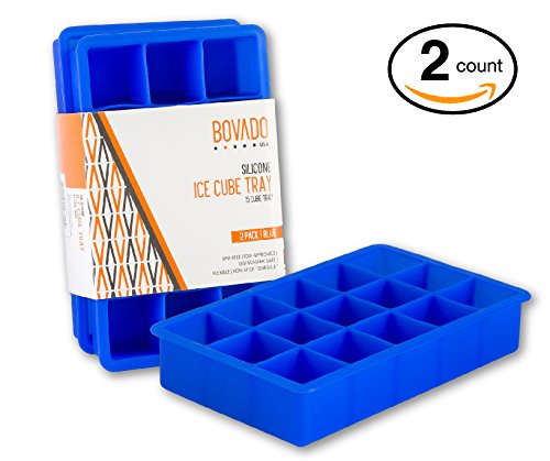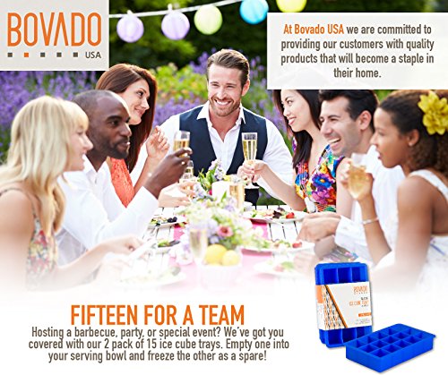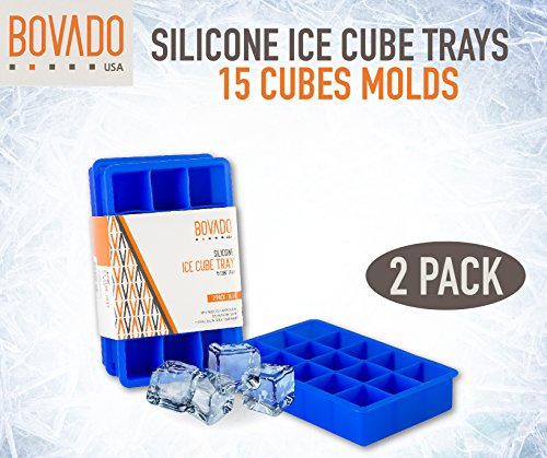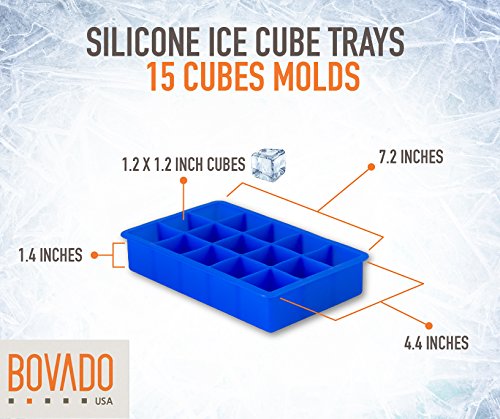 Silicone Ice Cube Trays - 15 Cubes Molds - Pack of 2 Flexible and Bendable Easy Release, Food Grade BPA Free Material - Blue - by Bovado USA
