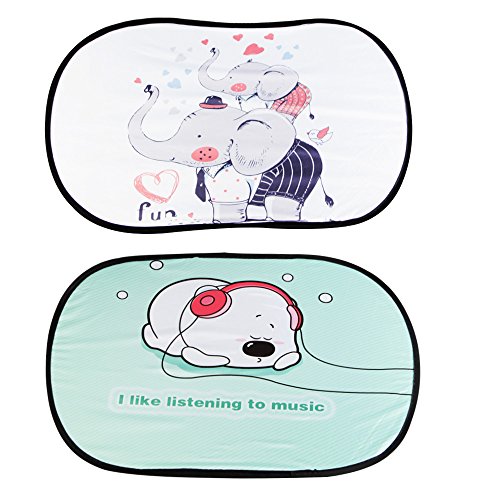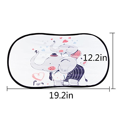 Car Window Shade, KAKIBLIN Easy-on & Easy-off Cartoon Sunscreen Insulation Sunshades for Babies and Children,Hi Elephant+Happy Dog(2 Packs)