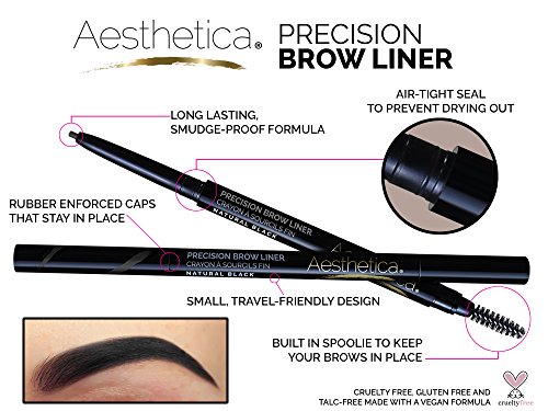The Aesthetica Precision Brow Liner helps you expertly blend natural color into sparse or weakly shaped brows. The pigment adheres to skin and hair while the spoolie set your brows in place, for a well-defined, flawless finish.