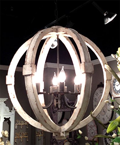 A dramatic, stunning way to light up entryway, porch, hallways, dining room or eat-in kitchen. This beautiful Wood-Metal Global Chandelier will add an elegant touch to your home decor. Finished in antiqued white. Measures 22.5"L x 22.5"W x 26"H.