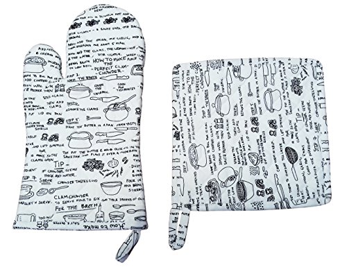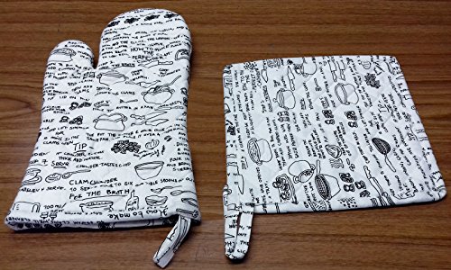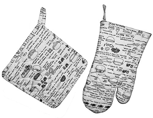 RHF 100% Cotton, Everyday Kitchen Basic, Machine Washable, Printed Oven Mitt and Pot Holder Gift Set, Black …