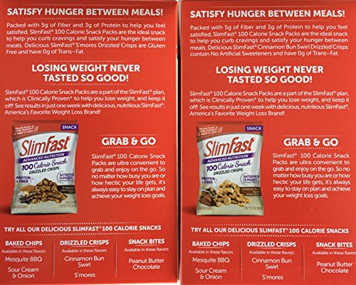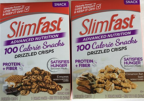 Slim Fast Advanced Mini Crisps Snacks Bundle of 2: S'mores and Cinnamon Bun Swirl (1 Pack of Each)