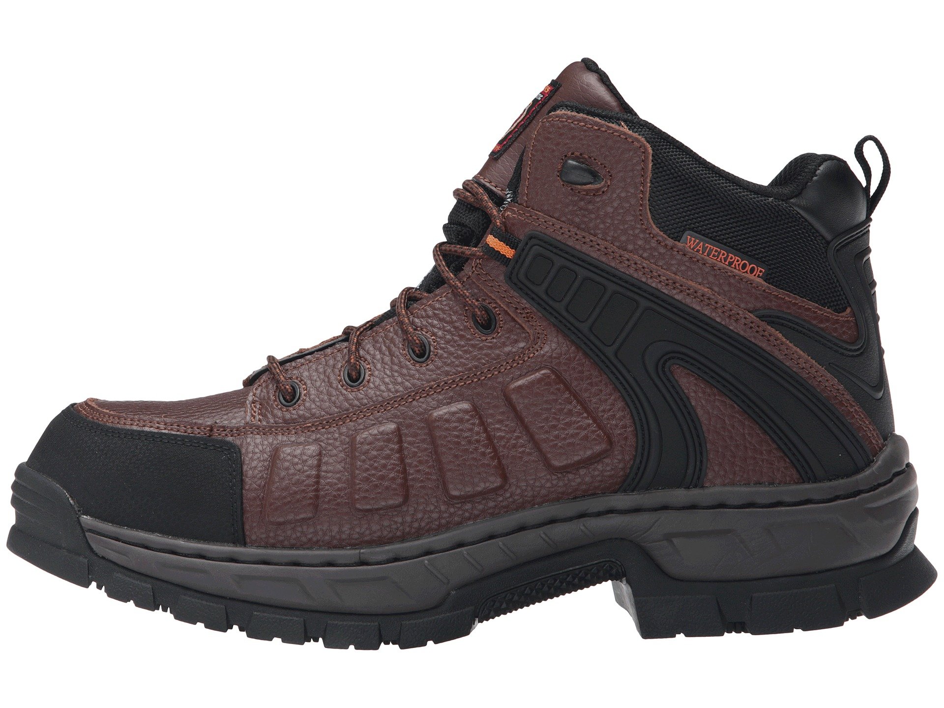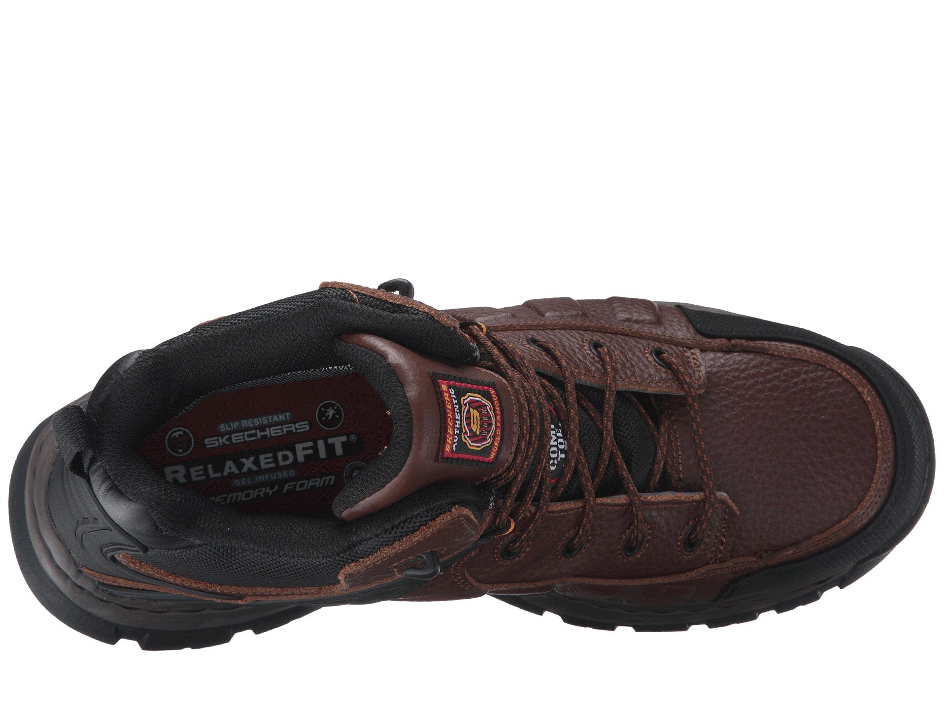 | Product Information SKU: #8797047The tough protection and supportive comfort of Skechers? Work Vinten - Gurdon boot will have you feeling reassured and safe so you can keep moving with ease throughout your work day. Lace-up work boot features incredibly comfortable Gel Infused Memory Foam cushioning and a Relaxed Fit? design.Waterproof casual work boot with lace-up design and nonmetallic composite toe protection. Smooth full grain embossed texture leather upper. Waterproof seam-sealed construction keeps out the wet elements for a drier, more comfortable foot environment.Durable textured synthetic overlays.Stitching detail for unique style.Lace-up closure with coated metal eyelets for a secure fit. Padded collar and gusseted tongue for all-day comfort.Heel loop.Soft fabric lining for breathability.Gel Infused Memory Foam cushioned comfort insole provides comfortable support.Shock-absorbent midsole.Flexible, high traction nitrile rubber outsole is oil and slip resistant. Sole tested ASTM F1677-05 Mark II to meet or exceed a .5 coefficient on wet and oily surfaces.Comp toe meets ASTM F2412-2011 I/75 C/75, EH safety standards. Imported. Product measurements were taken using size 12, width D - Medium. Please note that measurements may vary by size.Weight of footwear is based on a single item, not a pair.Measurements: Weight: 1 lb 13 oz Shaft: 4 1?2 in |