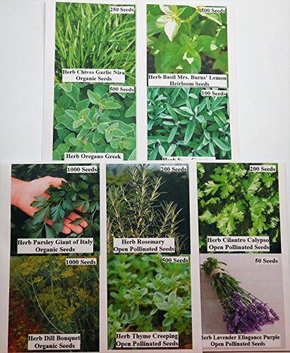 David's Garden Seeds Herb Culinary Seed Collection P971GH 3,500 plus Seeds (Open Pollinated, Heirloom, Organic) Set of 10 Packs