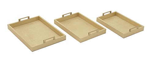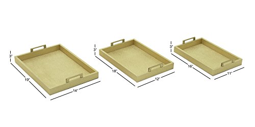 Deco 79 70678 Wood PVC Leather Tray, Set of 3