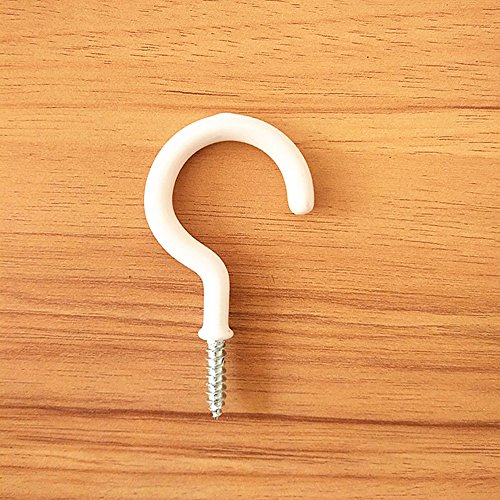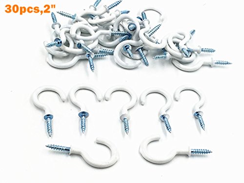 Kinteshun Cup Hooks Ceiling Hooks,Large Size Vinyl Coated Screw-in Open Hooks Hangers(30pcs,2 inches,White)