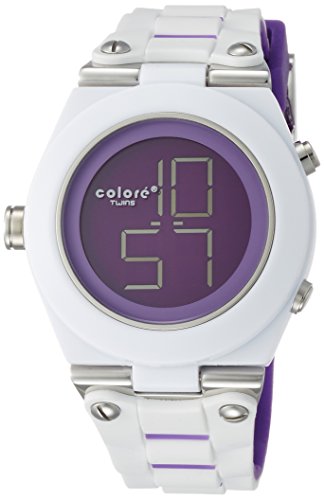 -. Feature : セット内容:本体-プラスチックケース入り、取扱説明書、保証書同梱 / 日常生活用防水:3BAR / Back文字盤カラーはパープル、ケース幅44㎜、バンド色はホワイト、デジタル表示になります。 / デュアルタイムウォッチ