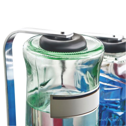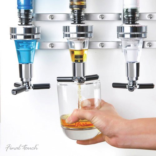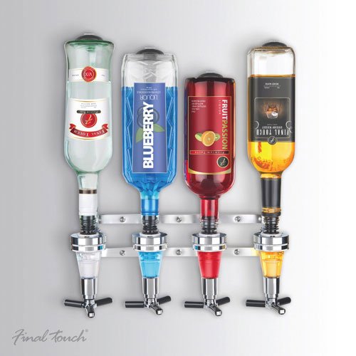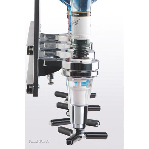? Space-saving design frees up shelf space ? Holds four bottles, up to 1 liter each ? Dispenses perfect, 1.5-oz. shots every time ? Sturdy aluminum frame mounts on wall with screws (detailed instructions included) ? Slim profile looks great on any wall ? Leak-proof dispensers ? Spring-loaded bottle holders 0 |