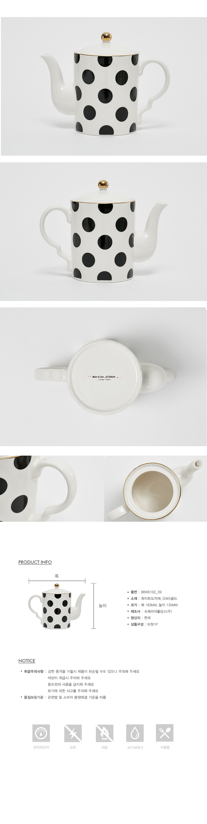 | 재질 | 화이트도자재, (24K), 골드 |