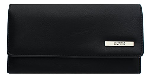 Carry the necessities around in style with this Saffiano Tri Me A River Wallet by Kenneth Cole Reaction. The interior features 2 large slip pockets, a divided bill compartment, 8 credit card slots, 2 ID windows and a small kiss-lock coin purse within a slip pocket, while the exterior features a spacious zip pocket. The wallet is fully lined and designed with a hidden magnetic closure. Great as a everyday wallet or as a clutch when you hit the town, get the most out of your wallet! Measures 8.75" x 4.15" x 1"Feature