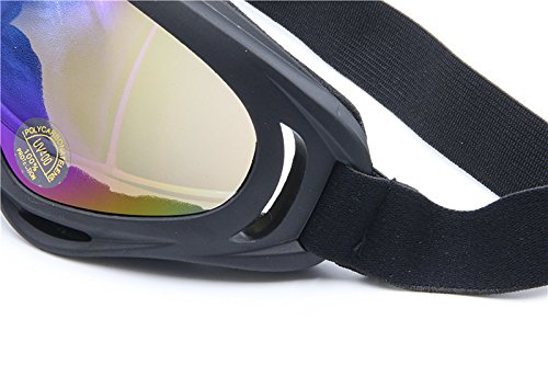 -. Feature : Made of durable ABS plastic, polycarbonate (PC) and soft sponge, this X400 goggles will meet most of your expectations. / With different lens color, it could be used day & night. UV400 protection PC lenses with anti-fog coating, to well block out the harmful ultraviolet light, reduce light intension, and remove object and road reflect stray glare. Scratch protective outer membrane layer can resist dust and liquid splashing. / Elastic headband strap is made of nylon fiber, it is adjustable & skidproof. 35mm width and about 40cm in max length, it fits for any person, both men and women to wear. / Optical design for the human body, space ventilation, blocking vision of strong winds, snow, fog and a variety of light. / Working with all kinds of helmets, sight, telescope, night vision system and the interior frame is seated with soft foam for comfort wearing.