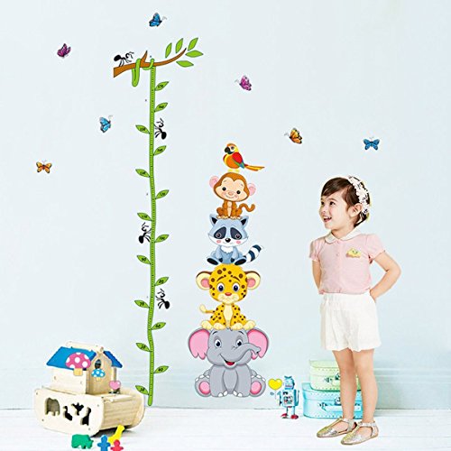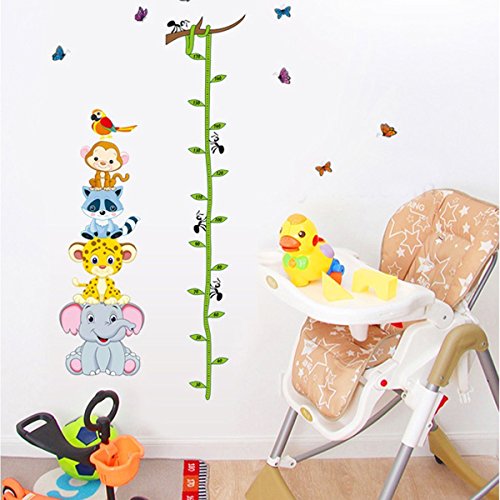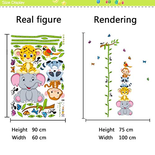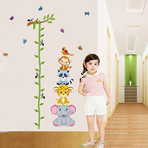 -. Title : LiveGallery Cartton Tree Branches & Vines Height Chart Measurement Wall Decal Animals Elephant Monkey Growth Charts Wall Stickers Removable DIY art Decor for Girls Boys kids Nursery Baby Playroom