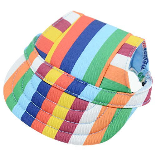 -. Title : BUYITNOW Small Dog Hat Stripe Pet Baseball Cap with Ear Holes, Adjustable for 4-18 lbs