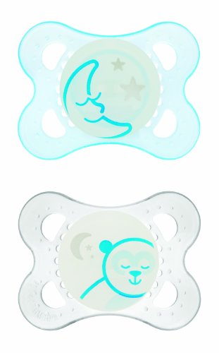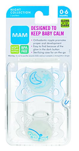 -. Binding : Baby Product -. Brand : MAM -. Color : Blue -. Department : baby-boys -. EAN : 5845215958495 -. Feature : Two glow in the dark BPA-free pacifiers, extra small and lightweight design / Curved shield allows the pacifier to sit comfortably on baby's face / MAM Ultra Soft Silicone Nipple stays comfortably in baby's mouth due to the anti-slip texture / Symmetrical nipple ideal for baby's jaw development / Textured surface and multiple small openings on the pacifier shield allow air to circulate and baby's skin to breathe -. IsAdultProduct : 0 -. Label : MAM -. Manufacturer : MAM -. Model : 1174-024-0-1 -. MPN : 1174-012-0-1 -. PackageQuantity : 1 -. PartNumber : 1174-012-0-1 -. ProductGroup : Baby Product -. ProductTypeName : BABY_PRODUCT -. Publisher : MAM -. ReleaseDate : 2013-08-06 -. Studio : MAM -. Title : MAM Night Orthodontic Pacifier, Boy, 0-6 Plus Months, 2-Count -. UPC : 796629108882