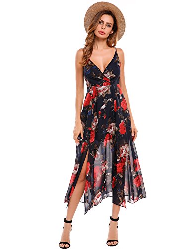 Skirt type: Sexy V neck high Waist type.Sleeveless, high Waist, Slit Side, Floor Length, Floral Print