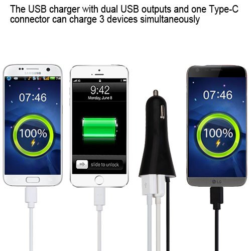 Studio : Cell Accessories For Less (TM) Publisher : Cell Accessories For Less (TM) Binding : Wireless Phone Accessory Product Description Cell Accessories For Less (TM) SPECIFICATIONSInput: DC12-24VOutput: 5V/3.1A (total)FEATURESThe USB charger with dual USB outputs and one Type-C connector can charge 3 devices simultaneously.The USB charger is equipped with Smart IC chip for better protecting your phone or battery during charging. It also rapidly charges your battery.Designed using ABS fireproof material with high gloss finish, effectively preventing scratches for a beautiful appearance.Compatible with most USB enable phones including APPLE, SAMSUNG, LG, MOTOROLA and more.Cell phones and accessories have become one of the most crucial personal technology purchases. If you don't know which cell phone, iPhone case, or Bluetooth headset to buy, we are here to help. The Target Buys is the perfect one-stop shop for a cell phones, cases, cell phone chargers, cell phone batteries and other accessories. You can choose a smartphone from brands like Samsung, Apple, Amazon Fire, LG, Blackberry, Motorola, Nokia, HTC, Kyocera, ASUS, ZTE, Blu, Sony, Pantech, and Casio. In accessories you have the option to choose from brands like OtterBox, Jawbone, Speck, iOttie, Jabra, Jaybird, and Plantronics. With The Target Buyst you're sure to end up with great accessories. You also have the choice of selecting accessories made for major providers like ATT, Verizon, Sprint, T-Mobile, Virgin Mobile, Boost Mobile, MetroPCS, Net10, Sprint Prepaid, Cricket and US Cellular. The Target Buys shoppers also have the option to upgrade their cell accessories to existing ATT, Verizon and Sprint devices. You can find the most popular cell phones,browse smartphones by brand, and even search for popular cell phone accessories. Whatever cell phone or accessory you're looking for The Target Buys has the perfect item at the right price.**DISCLAIMER - Most of our accessories are high quality brand new aftermarket products to specification. We make no claim of association or affiliation to Apple, Nokia, Ericsson, Motorola, Nextel, Samsung, San 0