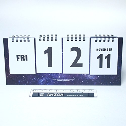 -. Feature : Package: Desk Calendar x 1ea, AHZOA Mini Ruler x 1ea / Desk Calendar Size : 4.02 x 10 Inch (10.2 x 25.4 cm) / Desk Calendar Usage: D-day Count +, D-day Count -, Daily Calendar, Monthly Memo Board / Desk Calendar Is A Reversible Type, One Side Is For Calendar Or Weekly Calendar, Another Side Is For Daily Calendar 2 Styles.(One Side P.R.Int Is Vivid, Another Side P.R.Int Is Less Vivid, Because Only One Side Is Coated) / Desk Calendar Is Also A Cute Size, So It Is A Good Interior Item For Decorating A Room, Cafe And Office!