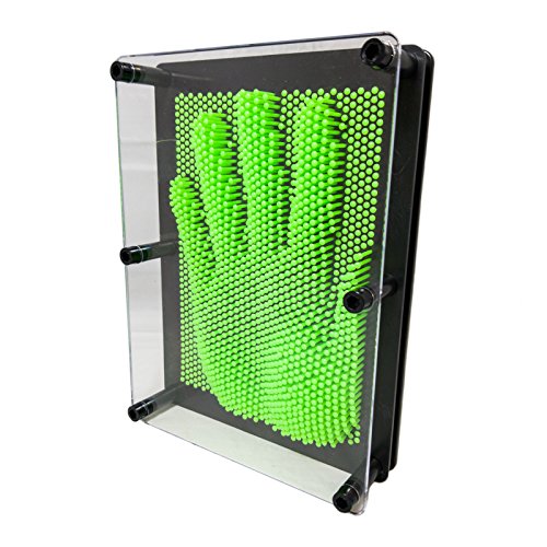 Fun Safe Pin Hand Mold Toy | Impression Sculpture Art 3D for Desk Office Home Room | Relaxing Stress Relieving Therapy-Like Toy | Kids & Adults 3D Art Display | 6” x 8” Display (Green)