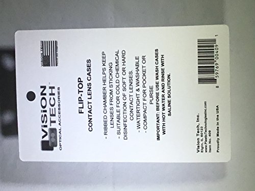 Studio : Plastic Technologies, Inc. Publisher : Plastic Technologies, Inc. Binding : Health and Beauty Product Description Vision Tech is a family owned company that produces high quality products at an affordable price. All products are made in the USA. Take the first vital step in protecting and disinfecting your eyes by storing them in our leak proof flip top contact lens cases made with durable plastic. After 30 days you should dispose of your contact lens case, as they are intended for monthly use. 0