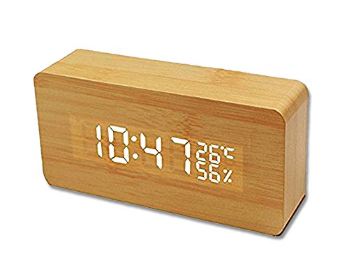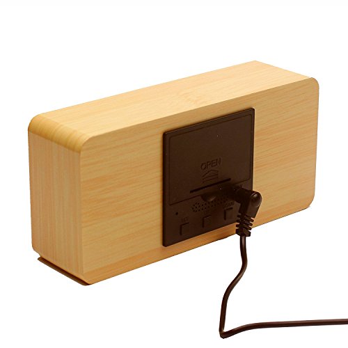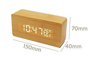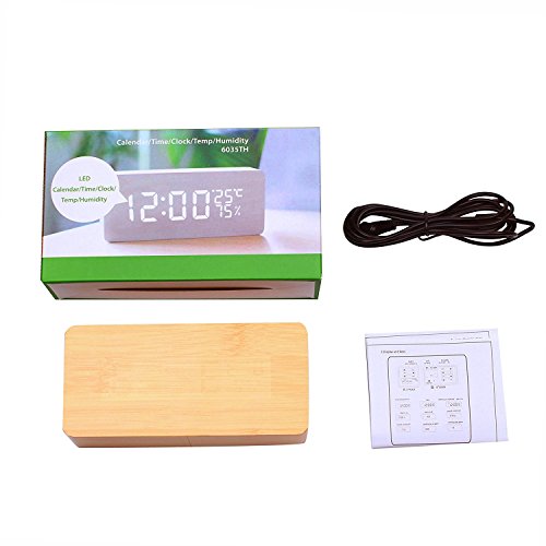 -. Feature : 【商品仕様】表示内容:年(西暦)・月・日・時・分・温度・湿度 / 【サイズ】:17*5.5*10cm 【質量】:約250g  / 【付属品】:約1.8mのUSBケーブル*1、木製置き時計*1、英文取扱説明書*1 / 【多機能】12H制/24H制、温度計(°C/°F)、湿度計、アラーム3組+週末アラーム、音声感知/常時点灯、LED明るさ3段階調節、省エネモード、2つ給電モード(USBケーブル/3*AAA(付属無し))、電源切れた時も設定記憶 ※ご注意:温度と湿度表示は少し誤差があります。