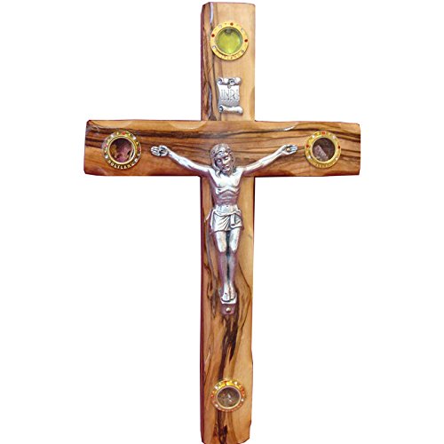 Zuluf 25cm Wall Holy Catholic Cross Olive Wood Christian Metal Crucifix - CRS042