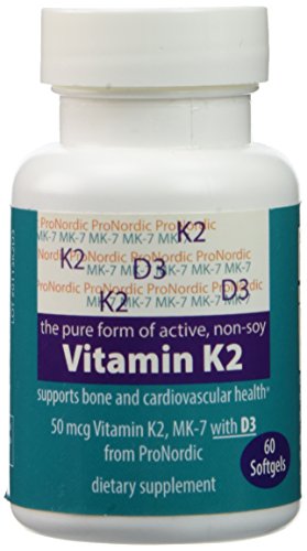-. Binding : Health and Beauty -. Brand : Pronordic Co. -. EAN : 0617529628358 -. Feature : NEW INCREDIBLE P.R.ICE FOR THIS EXCEPTIONAL PRODUCT! ...AND 1 FREE container sent with purchase of 5th container. It is not necessary to buy all 5 at once, we will track your purchases. / The pure, all bioactive, non-soy vitamin K2, MK-7. / The K2 is not from natto (any product from natto is soy) / 60 softgels, 50mcg per softgel, 30 doses per container / Vitamin D3 does come from a corn source, Questions? 888.959.9394 -. IsAdultProduct : 0 -. Label : ProNordic Co -. Manufacturer : ProNordic Co -. ProductGroup : Health and Beauty -. ProductTypeName : HEALTH_PERSONAL_CARE -. Publisher : ProNordic Co -. Studio : ProNordic Co -. Title : Pronordic's Pure Non-soy (not from Natto), All Bioactive Mk-7, Vitamin K2, Menaquinone with Vitamin D3, P.R.Ice adjusted due to overstock---Take advantage! Purchase 5 and receive 1 FREE Container! -. UPC : 617529628358