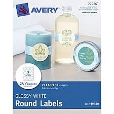 Avery Print-to-the-Edge Glossy White Round Labels, 2-1/2-Inch Diameter, Pack of 27 (22926)