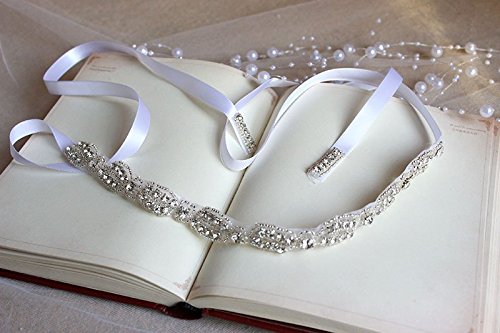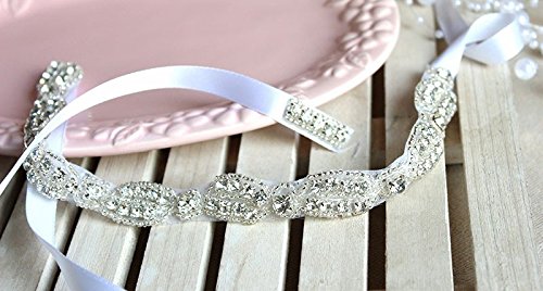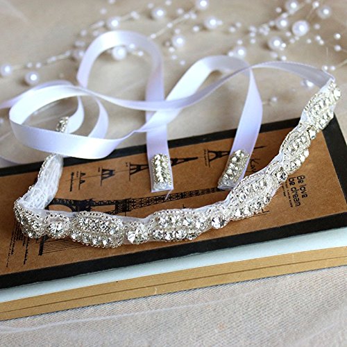 A Gorgeous high quality rhinestones . The silver plated rhinestone trim is secured with a white satin ribbon that ties into a bow at the base of the neck. This headband is a classic, simple, and yet brilliant piece- would be perfect for your big day!! The width of the rhinestone trim is just under 1",The shining clear rhinestones and silver-tone beads will dazzle people's eyes while ivory lace ribbon adds a touch of elegant. It's an ideal accessories for party, wedding, prom or everyday wear. This stylish headband suits for young teens and ladies of all ages.Feature