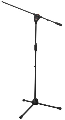 -. Feature : Professional microphone stand with boom / Includes "PUSH & ROLL" mechanism / Steel construction with epoxy powder paint / Loaded nylon tripod base / Clutch-style height adjustment