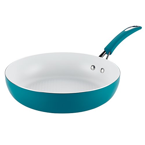 The deep skillet features PFOA-, PTFE- and cadmium-free aluminum construction and white ceramic nonstick that delivers exceptional food release