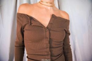 オフショルのデザインで女性らしさもグッと上がる1枚♪